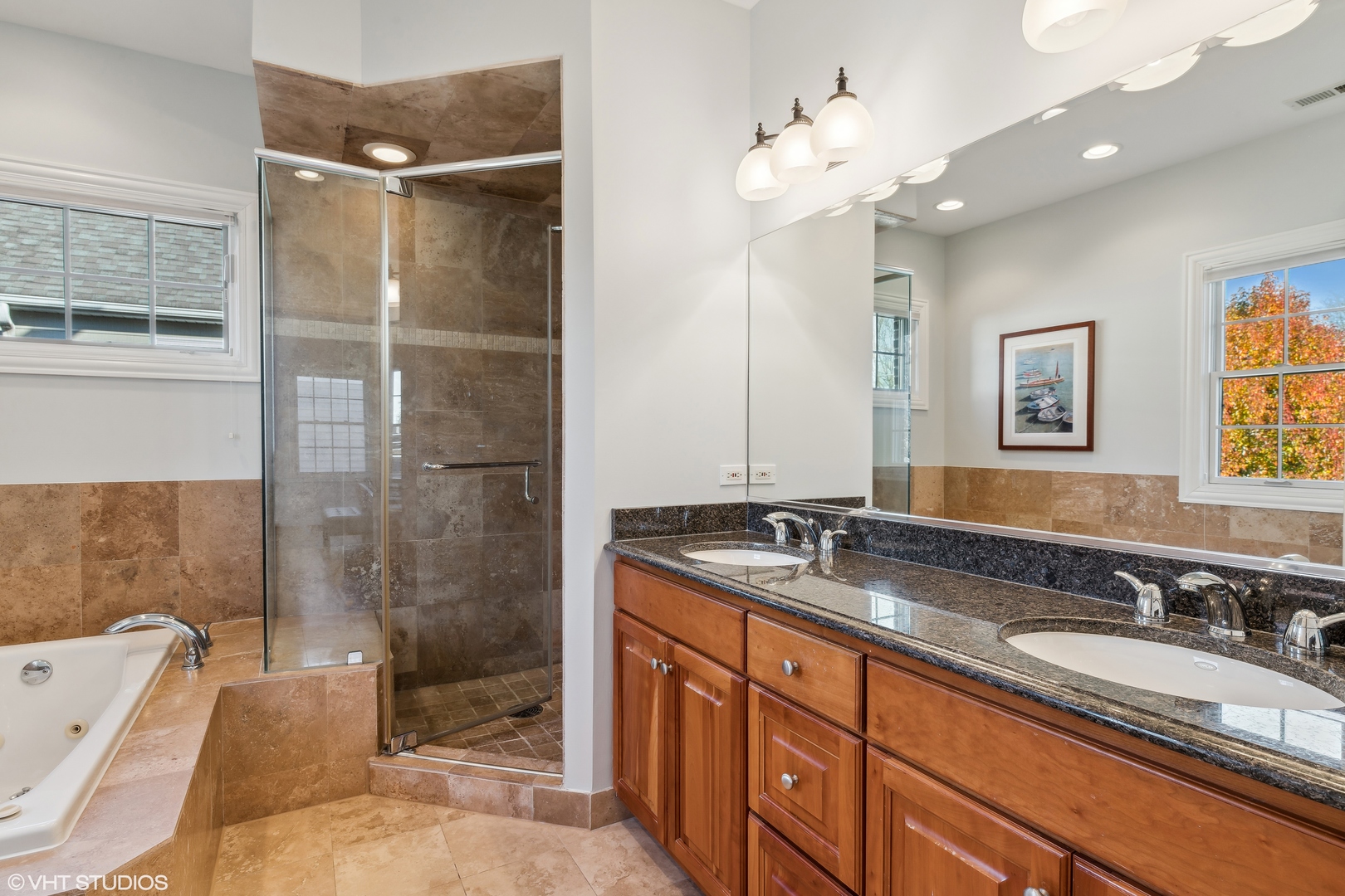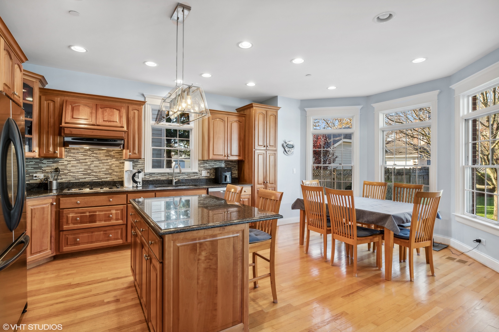 Beautiful two-story Colonial, crafted with alluring brick and stone, nestled in the heart of Uptown Park Ridge. This residence boasts 4 bedrooms, 4 baths, and 9' ceilings spanning all three levels. A refined dining room, a family room featuring a stone fireplace, and a gourmet kitchen adorned with cherry cabinets define the first floor. The versatile 1st-floor office could easily serve as a 5th bedroom, complete with a convenient full bath. Stainless steel appliances, granite countertops with an island, and a whole-house vacuum system enhance the appeal. The master suite offers a en-suite full bath, complemented by the convenience of second-floor laundry. The fully finished basement includes a full bath with steam shower. Enjoy the ultimate convenience of walking to the train, restaurants, and shops. This residence encompasses 4,200 square feet of total living space!