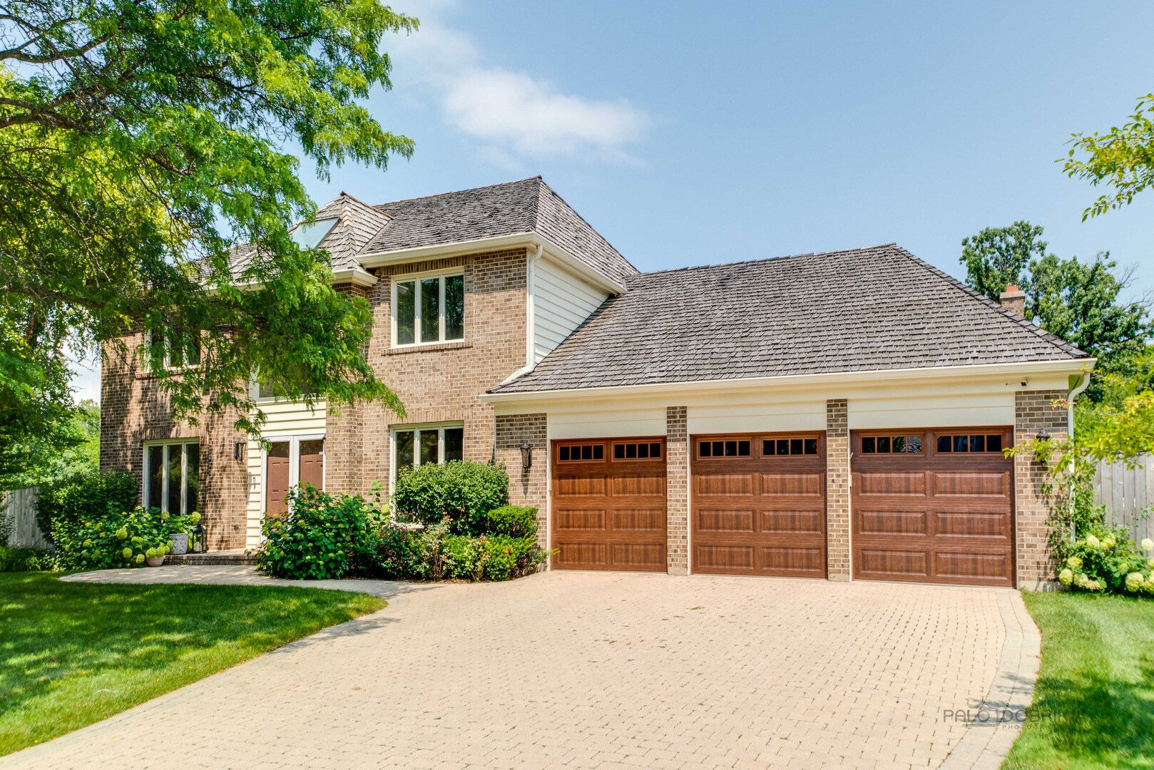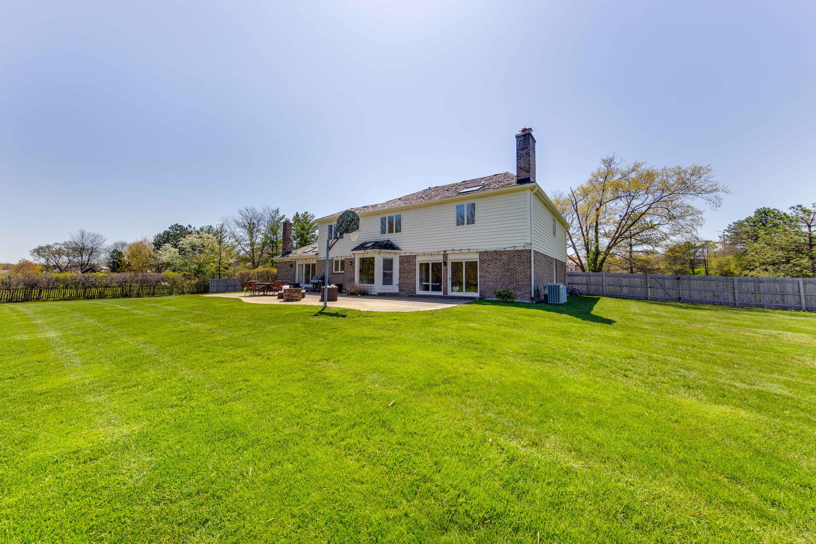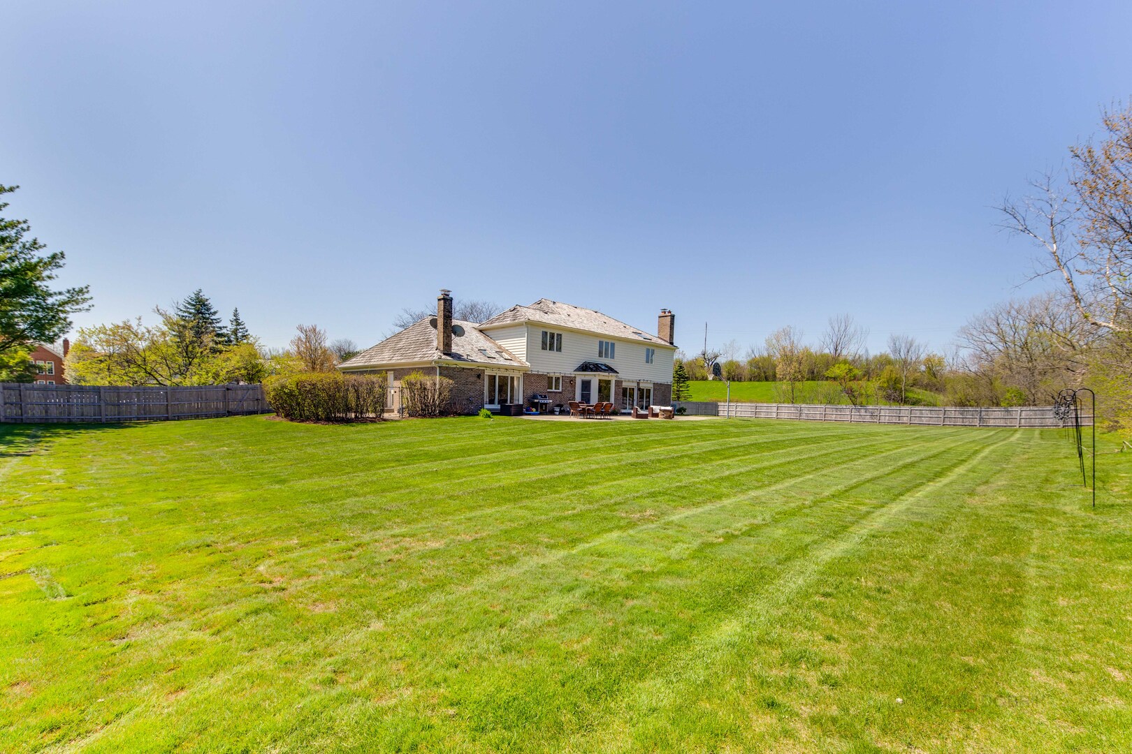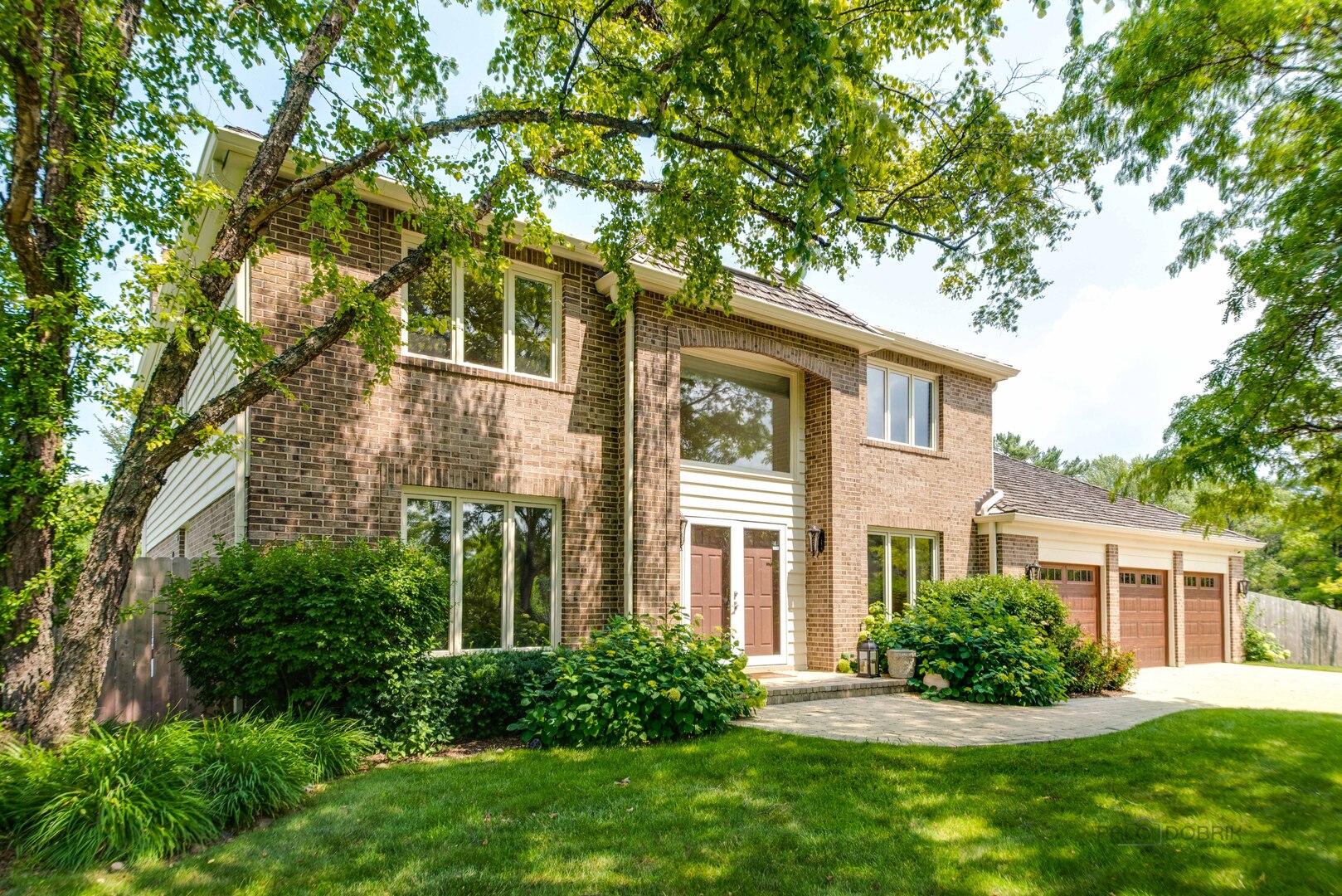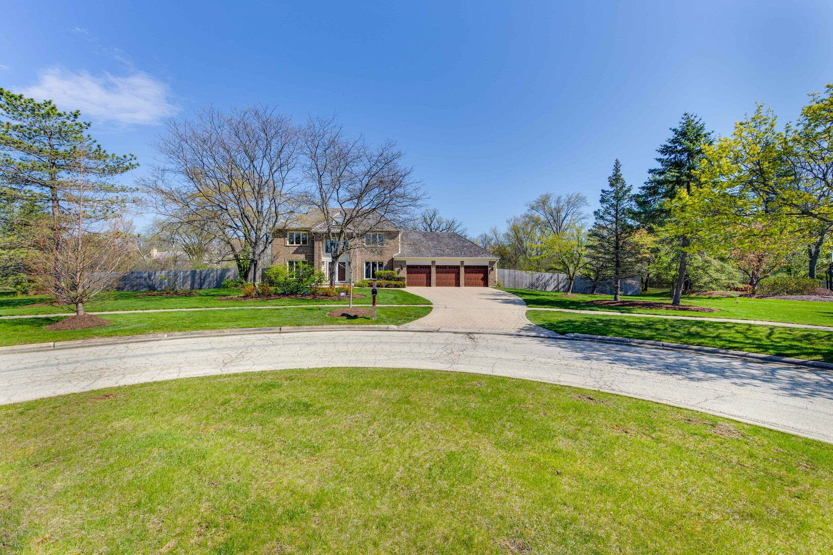 At the end of a quiet cul de sac, this East Lake Forest brick home, with NEW ROOF '24, sits on almost an acre with fenced in backyard, creating a private oasis! Located in desirable Onwentsia Gardens, this 5300+ sq foot home, on all three levels, is filled with sensational natural light and gorgeous hardwood floors throughout. The lovely double front doors open to a foyer, formal dining and living room. The gourmet white kitchen, completed in '18 features quartz countertops, a six burner Viking cooktop, Miele dishwasher, Sub Zero refrigerator, Jenn Air double oven, and generous cabinet storage space with under counter lighting. There is a large breakfast area with a wall of windows and doors, overlooking the large amazing patio and fenced in backyard. The windows and doors overlooking the backyard extends into the large family room and office/study that provide great flow for indoor/outdoor living! The home offers two fireplaces, in the family room and study/office, with dramatic shiplap ceilings and gleaming hardwood floors. Additionally, the first floor has a powder room off of the foyer. All four spacious bedrooms are on the second floor. The primary suite is very large with a luxurious master bath that has two separate dressing areas, each with a walk in closet and separate sink areas, leading to the extensive primary bathroom with steam shower and Jacuzzi tub with skylight. Bedroom 2, 3 and 4 are generously sized with oversized closets. There is an additional full bathroom on the second floor. The finished basement provides added living space with room for an exercise area, entertaining or game area with another full bathroom! You'll appreciate the fully fenced in yard with attractive patio, newer Weber grill and large area to play ball! The first floor laundry features a newer Bosch Washer & Dryer. A deep 3 car, garage with newer garage doors '18, with a sidewalk door access, to a dog run. There is plenty of space for a pool, tennis court or putting green. Improvements include New Roof '24 sump pumps with battery backup system '23, designer light fixtures '23, sprinkler system and 2 zoned A/C & HVAC, interior painting '23. Homeowner added privacy fence on side and in front of the property '19, invisible pet fence '20, additional insulation in attic and crawl space in '22, outside trim painted '22. This home is sunny and bright with so much flexibility in the floorplan and a fantastic location near great walking paths, close to highway, school, park and shopping!