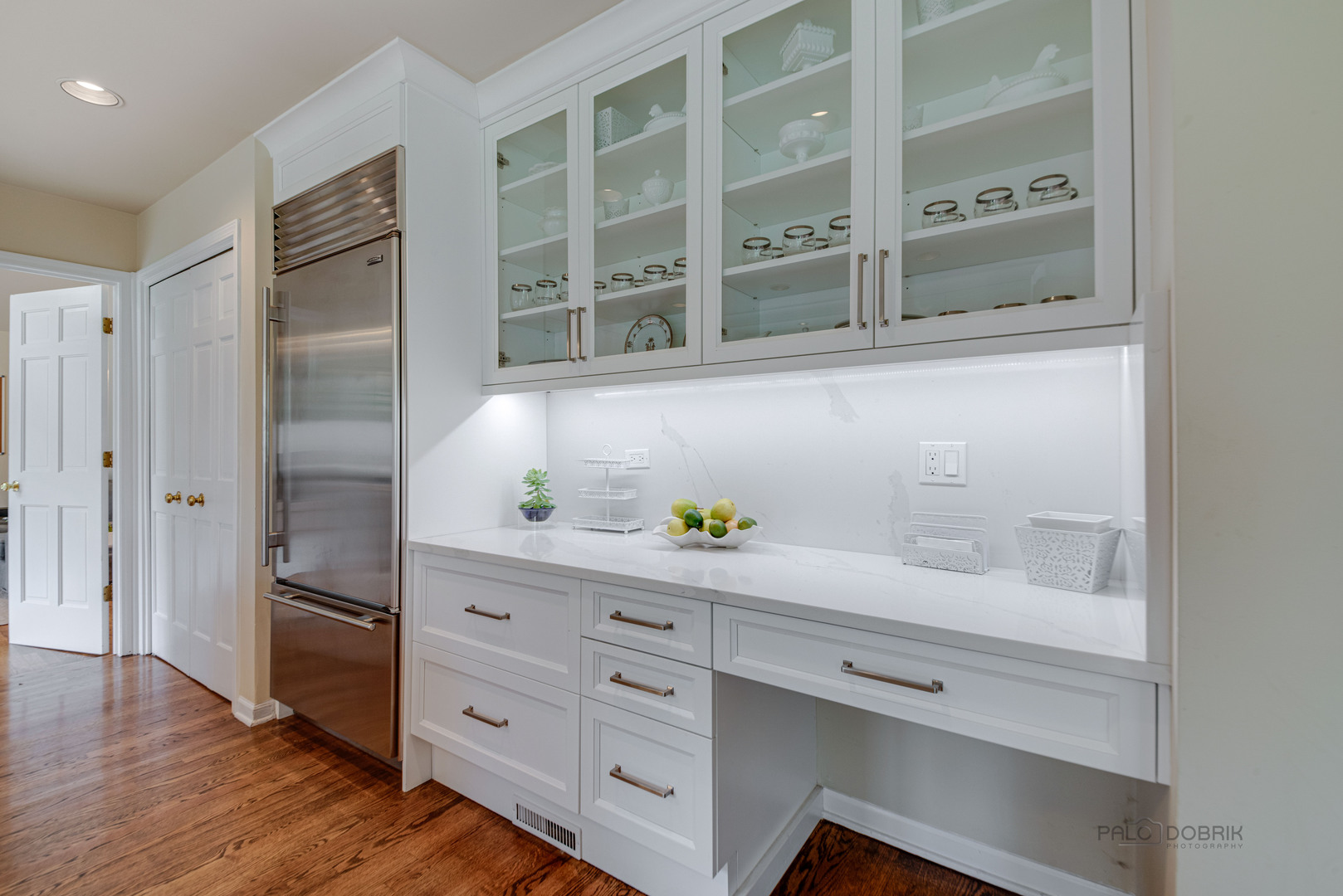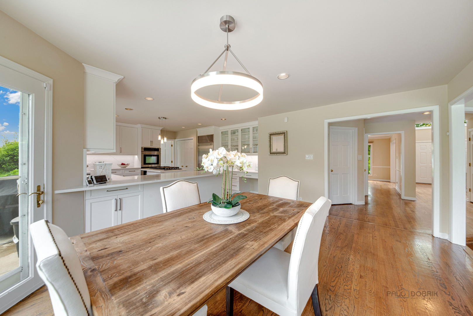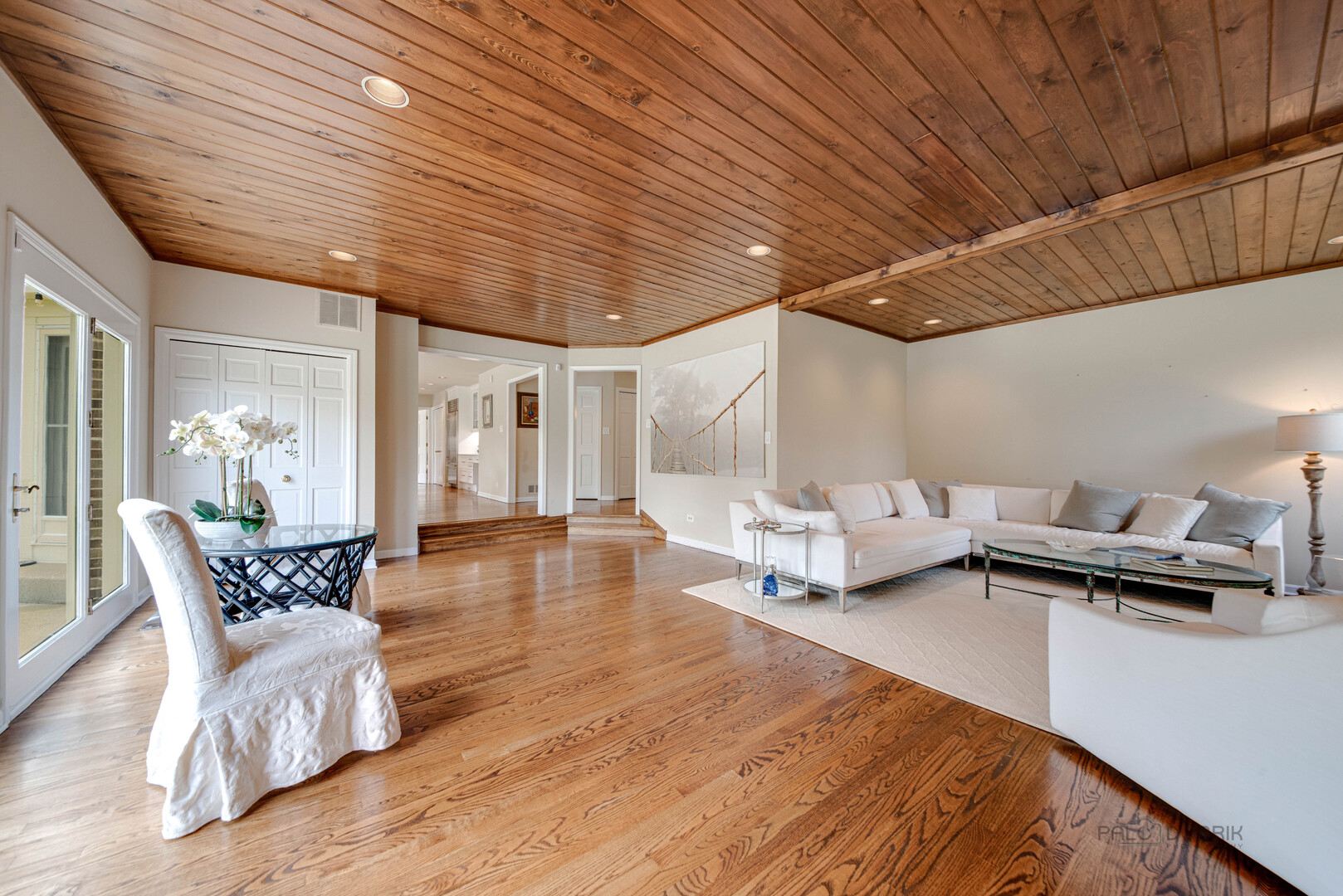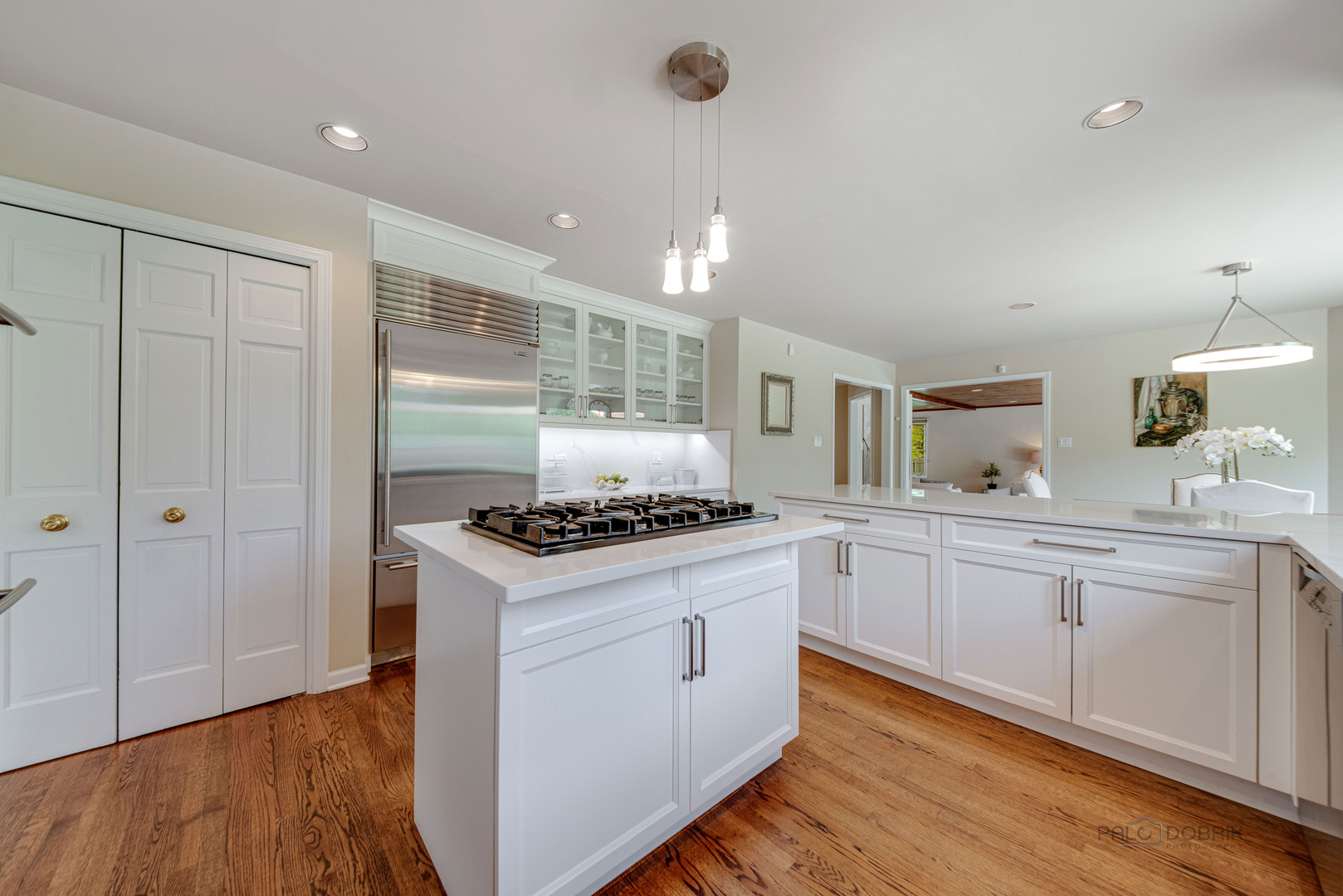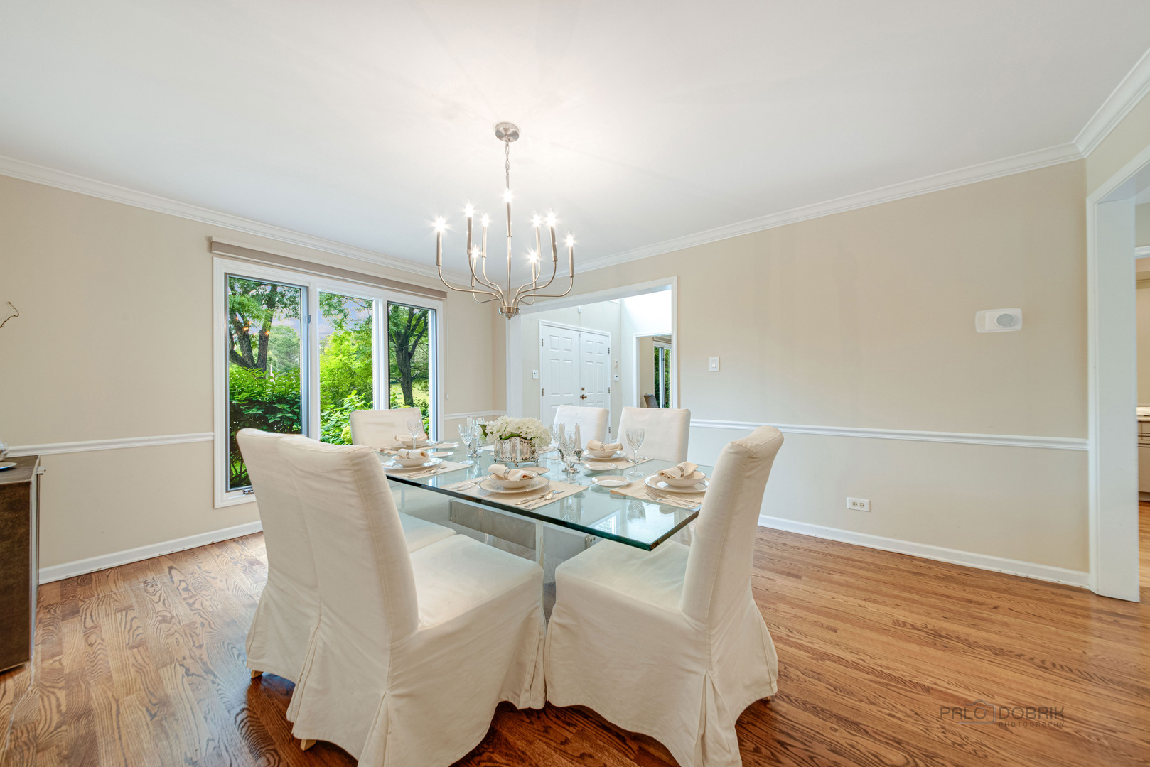 At the end of a quiet cul de sac, this East Lake Forest brick home, with NEW ROOF '24, sits on almost an acre with fenced in backyard, creating a private oasis! Located in desirable Onwentsia Gardens, this 5300+ sq foot home, on all three levels, is filled with sensational natural light and gorgeous hardwood floors throughout. The lovely double front doors open to a foyer, formal dining and living room. The gourmet white kitchen, completed in '18 features quartz countertops, a six burner Viking cooktop, Miele dishwasher, Sub Zero refrigerator, Jenn Air double oven, and generous cabinet storage space with under counter lighting. There is a large breakfast area with a wall of windows and doors, overlooking the large amazing patio and fenced in backyard. The windows and doors overlooking the backyard extends into the large family room and office/study that provide great flow for indoor/outdoor living! The home offers two fireplaces, in the family room and study/office, with dramatic shiplap ceilings and gleaming hardwood floors. Additionally, the first floor has a powder room off of the foyer. All four spacious bedrooms are on the second floor. The primary suite is very large with a luxurious master bath that has two separate dressing areas, each with a walk in closet and separate sink areas, leading to the extensive primary bathroom with steam shower and Jacuzzi tub with skylight. Bedroom 2, 3 and 4 are generously sized with oversized closets. There is an additional full bathroom on the second floor. The finished basement provides added living space with room for an exercise area, entertaining or game area with another full bathroom! You'll appreciate the fully fenced in yard with attractive patio, newer Weber grill and large area to play ball! The first floor laundry features a newer Bosch Washer & Dryer. A deep 3 car, garage with newer garage doors '18, with a sidewalk door access, to a dog run. There is plenty of space for a pool, tennis court or putting green. Improvements include New Roof '24 sump pumps with battery backup system '23, designer light fixtures '23, sprinkler system and 2 zoned A/C & HVAC, interior painting '23. Homeowner added privacy fence on side and in front of the property '19, invisible pet fence '20, additional insulation in attic and crawl space in '22, outside trim painted '22. This home is sunny and bright with so much flexibility in the floorplan and a fantastic location near great walking paths, close to highway, school, park and shopping!