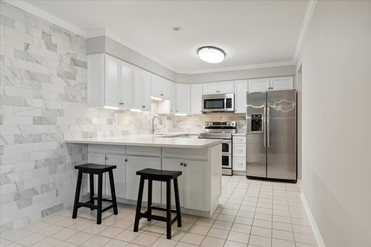 Discover the recent updates in this stunning second-floor, east-facing Crystal Point condo.This beautifully remodeled 2-bedroom, 2-bathroom unit boasts hardwood floors in the living and dining areas and has been freshly painted throughout. The highlight of the condo is its exquisite white gourmet kitchen, renovated in 2022. It features quartz countertops, an Italian porcelain backsplash, fresh white cabinetry, and new appliances, including a stainless dishwasher (2021) and stovetop (2020). Additional updates include a new furnace and AC unit (2024), all-new Andersen windows (2020), and a balcony accessible via a new sliding glass door. The hall bathroom has been completely remodeled with a new vanity and Italian porcelain floors with radiant heat. The spacious primary bedroom offers a large walk-in closet, a stackable washer/dryer (2019), and a private bathroom. Additional features include one heated underground garage space with a storage cage, an elevator building with an exercise room and party room, and an outdoor pool for summer relaxation. The condo is ideally located near restaurants, grocery stores, downtown Market Square, Metra train, and Lake Forest Beach. Move right in and enjoy your new home!