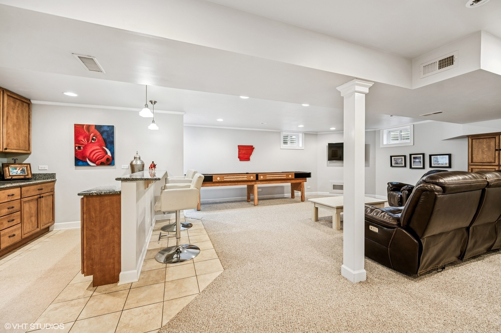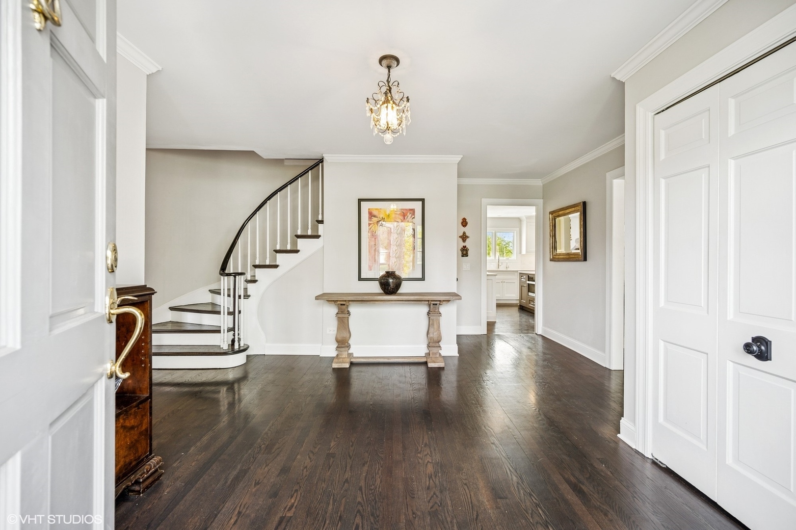 Set on a beautiful 0.8-acre lot with a south-facing stunning backyard, this 3,792 sq. ft. brick colonial is ready to welcome you home. Filled with natural light and offering a fantastic floor plan, the first floor boasts a recently renovated kitchen featuring high-end appliances, quartz counters, a spacious eating area, along with a gracious living room and dining room with expansive windows, a cozy family room with wood ceiling beams, and a striking stone fireplace. A separate first-floor laundry room and a well-appointed mudroom with a sink and ample storage add convenience to everyday living. Upstairs, there are five generously sized bedrooms, all featuring hardwood floors, and are complemented by three updated bathrooms. The finished 1,800 sq. ft. basement provides even more living space with a large game room, recreation room, wet bar area, office/workout space, and ample storage. Enjoy serene views of your own park-like backyard from nearly every room and being close to Everett Elementary School, parks, tennis courts, baseball fields, and shopping. Don't miss this exceptional home! Furnace in 2025, A/C in 2023, and roof and gutters installed in 2018. Showings to begin on Thursday May 8th. Owner is an IL licensed agent.