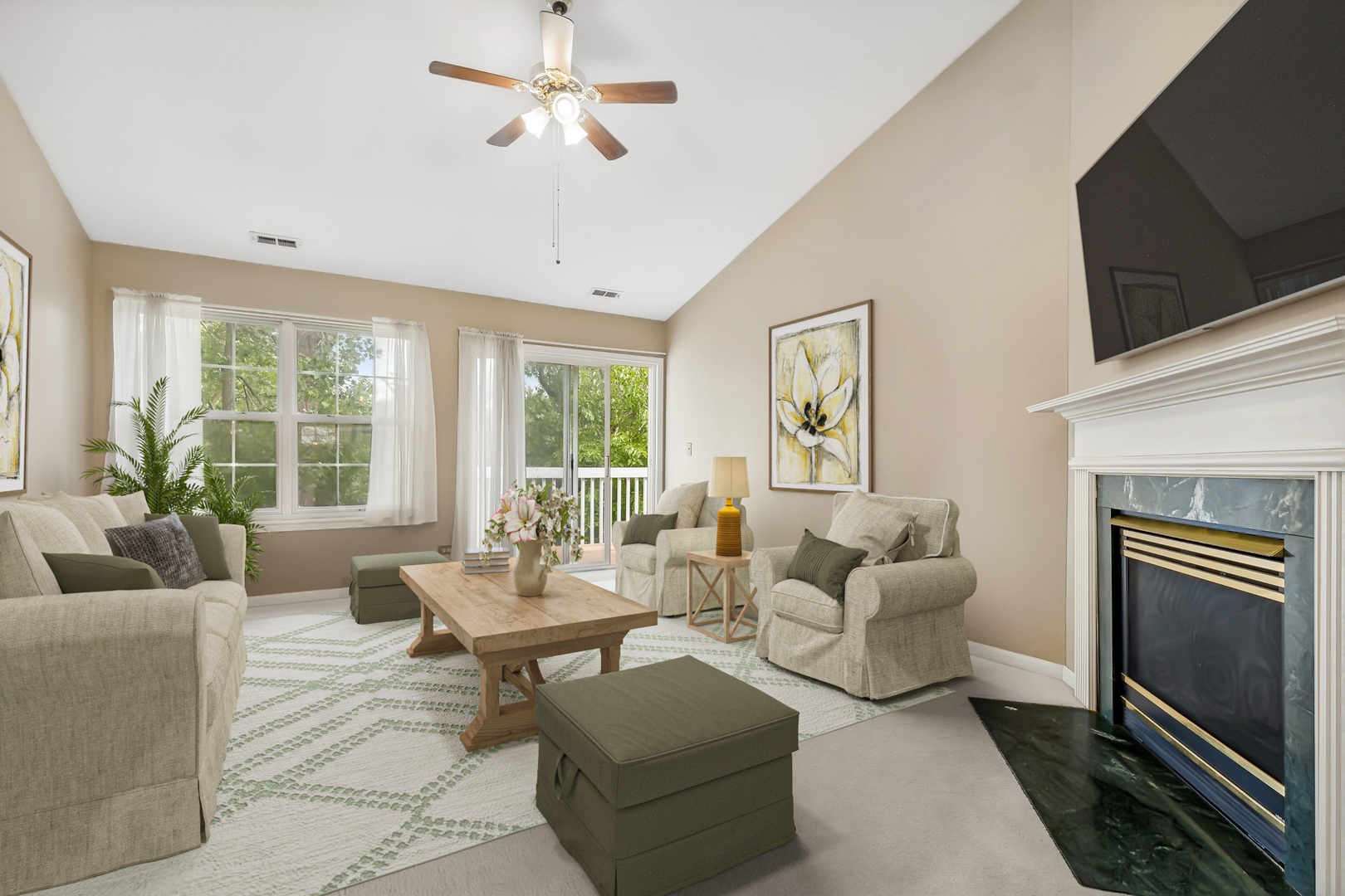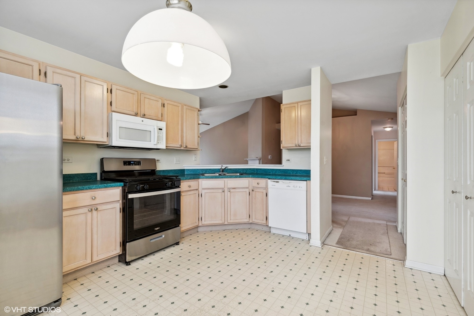 This second level ranch Stonebrook townhome is situated on a quiet cul-de-sac overlooking a wooded area with a pond. This spacious model features three good size bedrooms, two full baths, open floor plan with vaulted ceiling, family room with sliders to deck, fireplace, eat-in kitchen with newer appliances, laundry room, and two car garage with plenty of room for storage. Serene neighborhood yet minutes from shopping and highway. The monthly assessment of $199 covers Common Insurance, Exterior Maintenance, Lawn Care, Scavenger, Snow Removal.