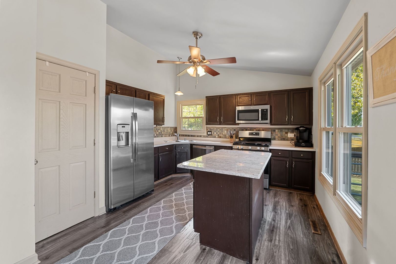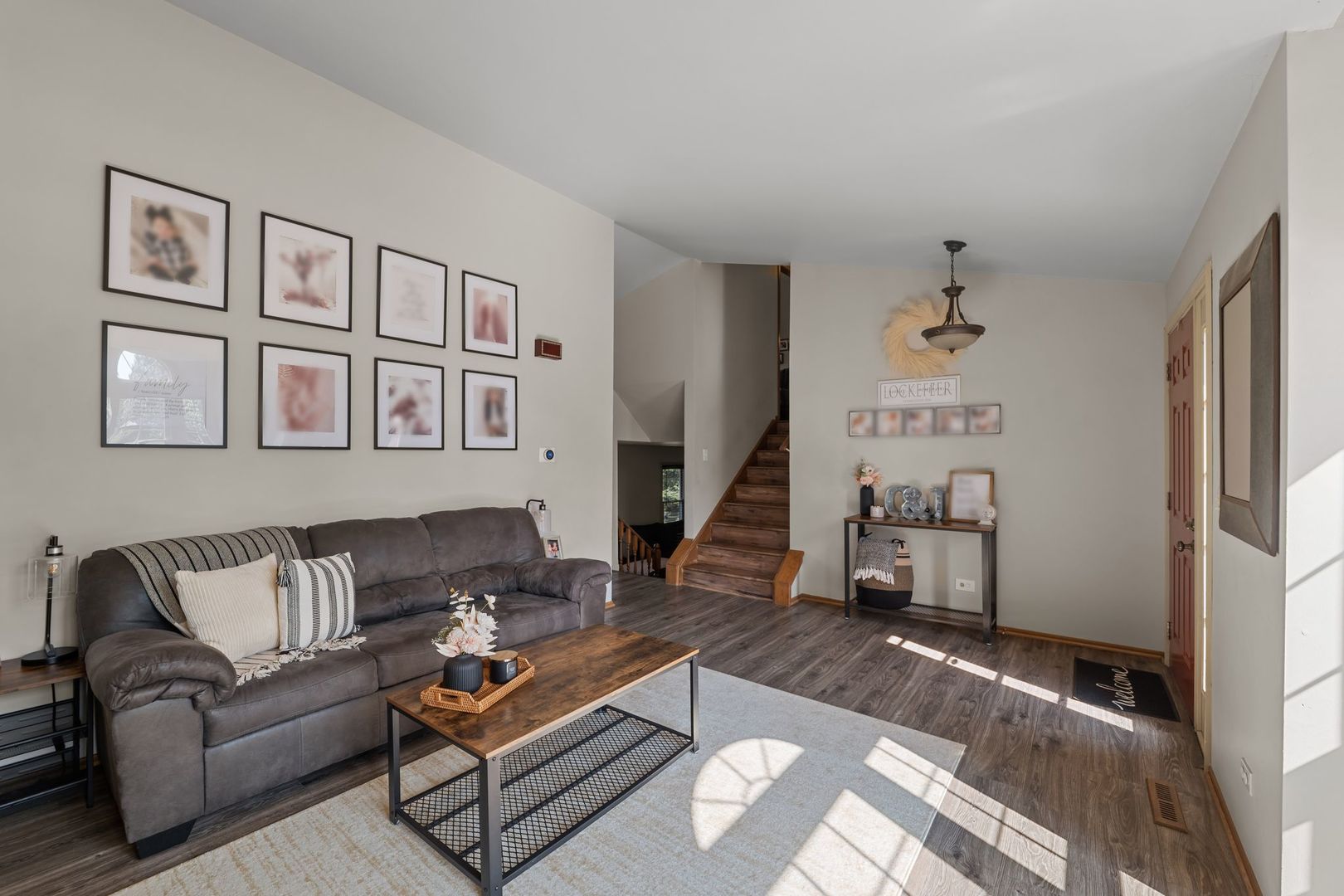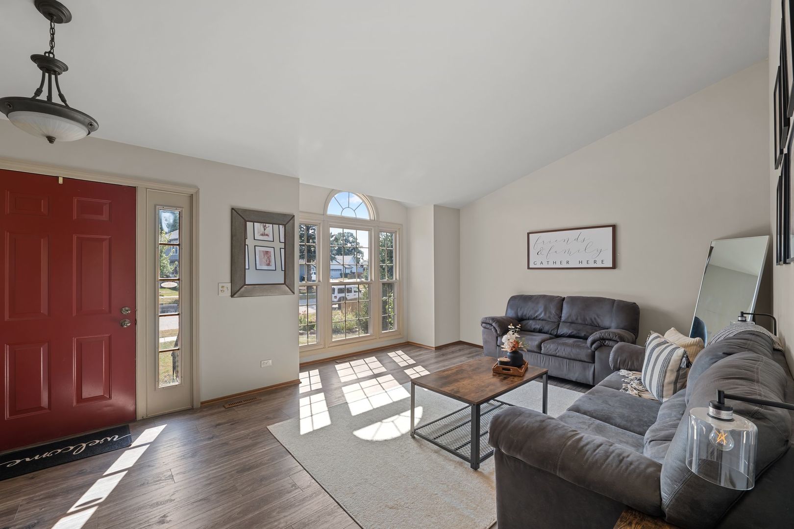 Move right into this beautiful home! Enjoy the vaulted ceilings and newer wood laminate floors in the spacious living room that lead to a well-appointed kitchen with an island, pantry, and stainless steel appliances. Sliders open to a back deck and a backyard sanctuary with a fire pit and entertaining space overlooking a beautiful natural area. The kitchen overlooks family room with fireplace and conveniently located powder room. Washer and dryer are included on this level for added convenience. Upstairs, the master suite features vaulted ceilings, ample closet space, and a private bath with nature views. Two additional bedrooms and an updated hall bath complete this level. The finished sub basement offers endless possibilities for extra living space, office, playroom, or 4th bedroom. All this in a great location steps to the park and access to top-notch schools (Grayslake North, Avon and Frederick)