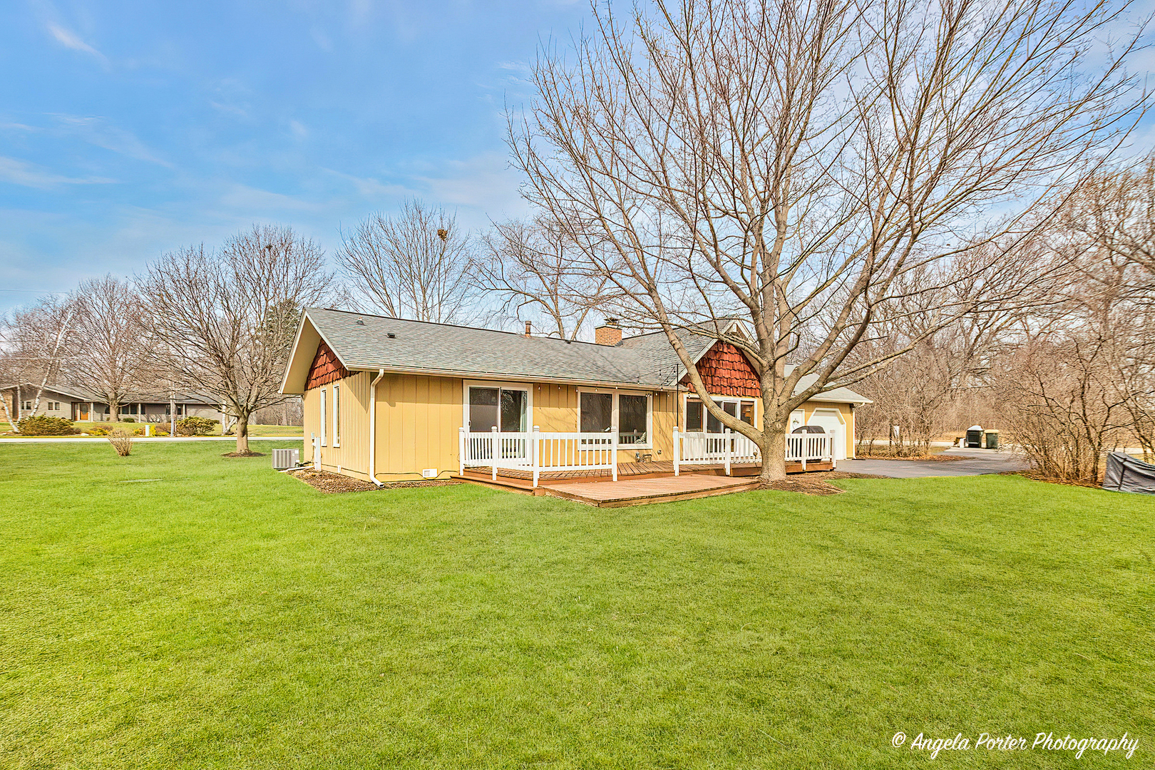 MULTIPLE OFFERS RECEIVED- highest and best by 3pm Friday, April 25th. Situated on a gorgeous corner lot on nearly an acre of land, this beautifully updated home has an abundance of charm and unique character featuring custom woodwork throughout-- within Gurnee School District. There is plenty of room for entertaining friends and family on the freshly painted deck under the warm bistro lighting, and this rare property provides ample space for outdoor activities or future expansions. Enter through the welcoming front foyer with new doors that connects to the kitchen equipped with newer appliances and a massive walk-in pantry. The cozy wood-burning brick fireplace is the main focal point of the living room connected to a family room that could be transformed into office space or play room. Enjoy the convenience of the primary suite on the main floor having its own private full bathroom and walk-in closet with plenty of storage space. Additional valuable updates include newer washer/dryer, sliding doors, windows, well pump, kitchen appliances, invisible fence installation, and chimney updates. Welcome home!